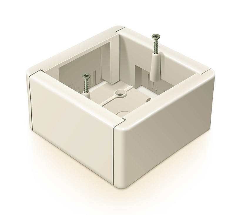 Коробка установочная универсальная для наружного монтажа 85х85х44мм. Используется для установки электротехнической продукции (розетки, выключатели) с межцентровым расстоянием 60мм, глубиной не более 40мм, при монтаже открытой проводки. Также, используется при монтаже с кабель-каналом шириной от 10мм до 80мм и высотой от 7мм до 40мм Съемные боковые стенки, позволяют соединять несколько коробок вместе, для установки 2-х и более механизмов.