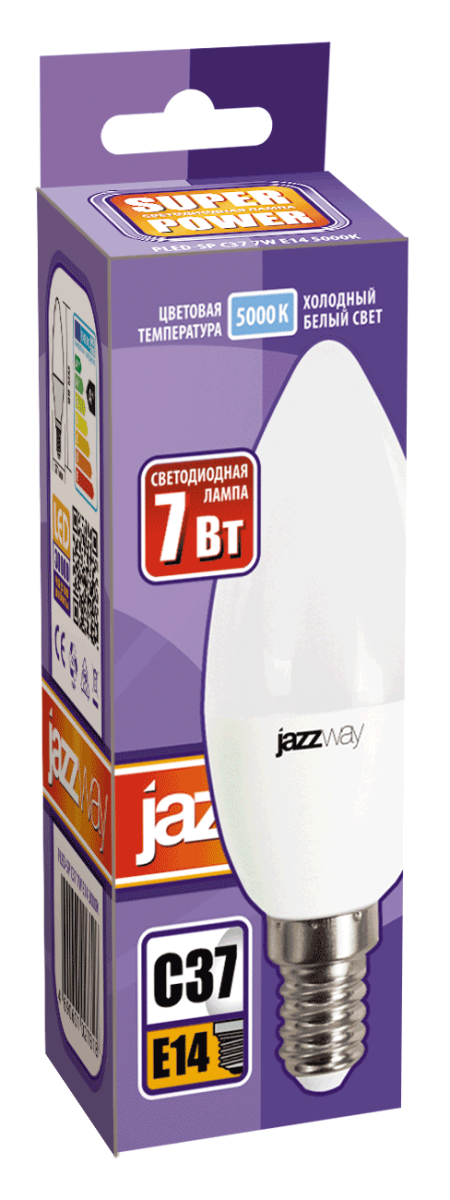 Лампа-LED E14 7W C37 5000K 560Lm Jazzway свеча уп50