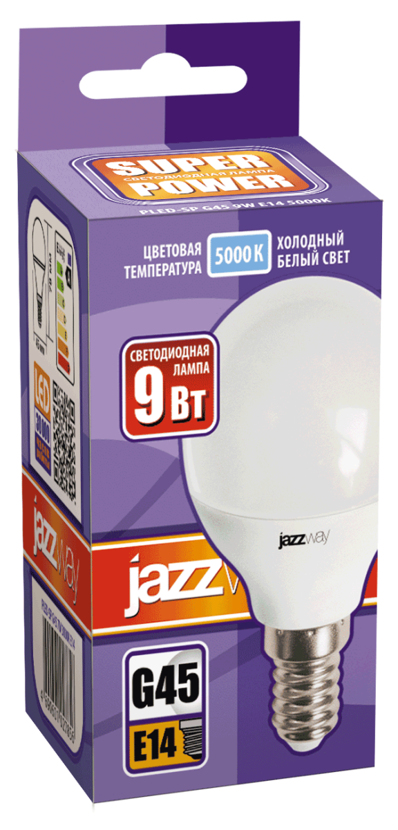 Лампа-LED E14 9W G45 5000К 820Lm Jazzway шарик уп50
