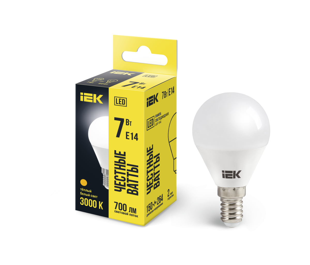 Лампа-LED E14 7W G45 3000K 630Lm ECO ИЭК уп10 ЗАКАЗ