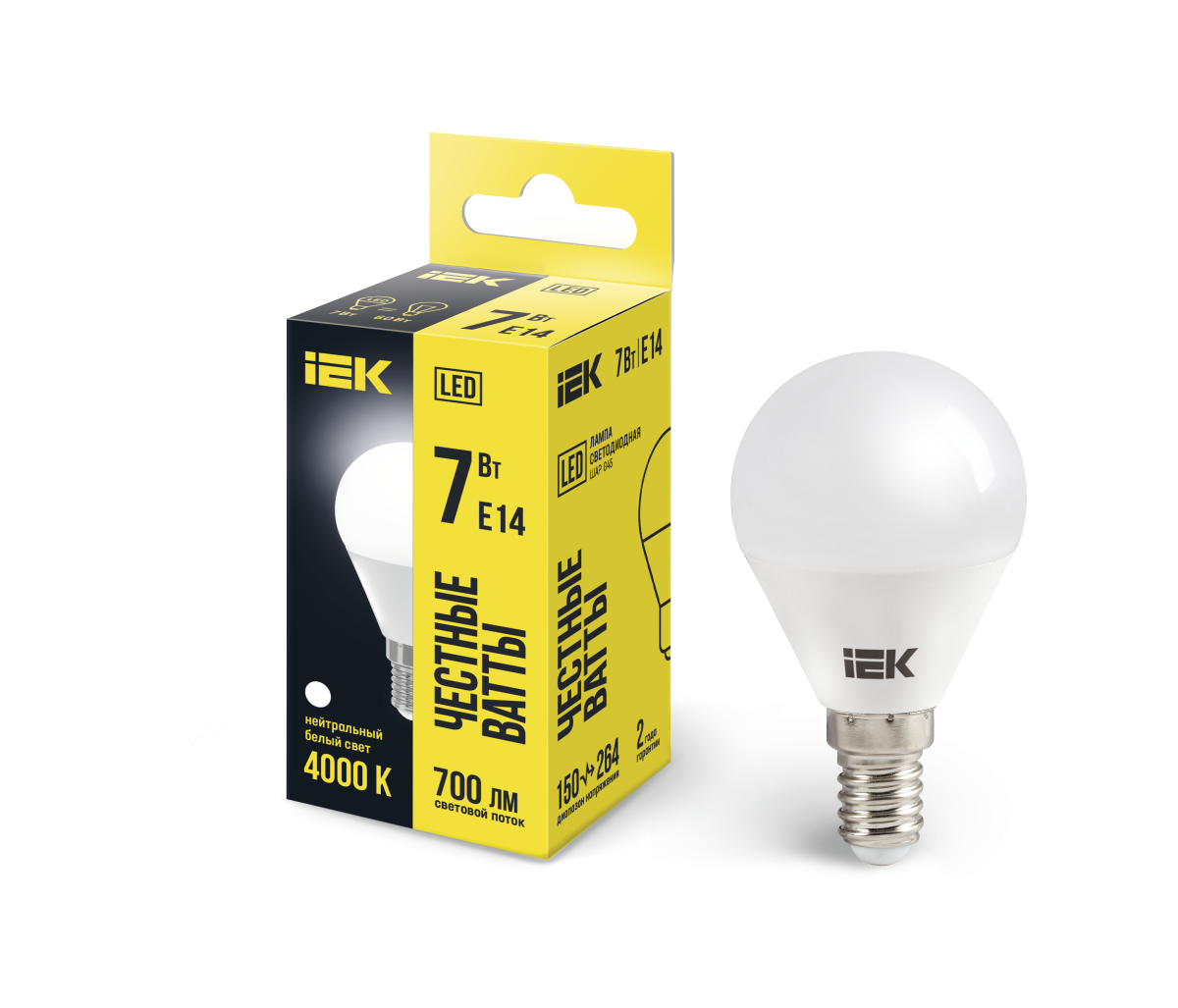Лампа-LED E14 7W G45 4000K 630Lm ECO ИЭК уп10