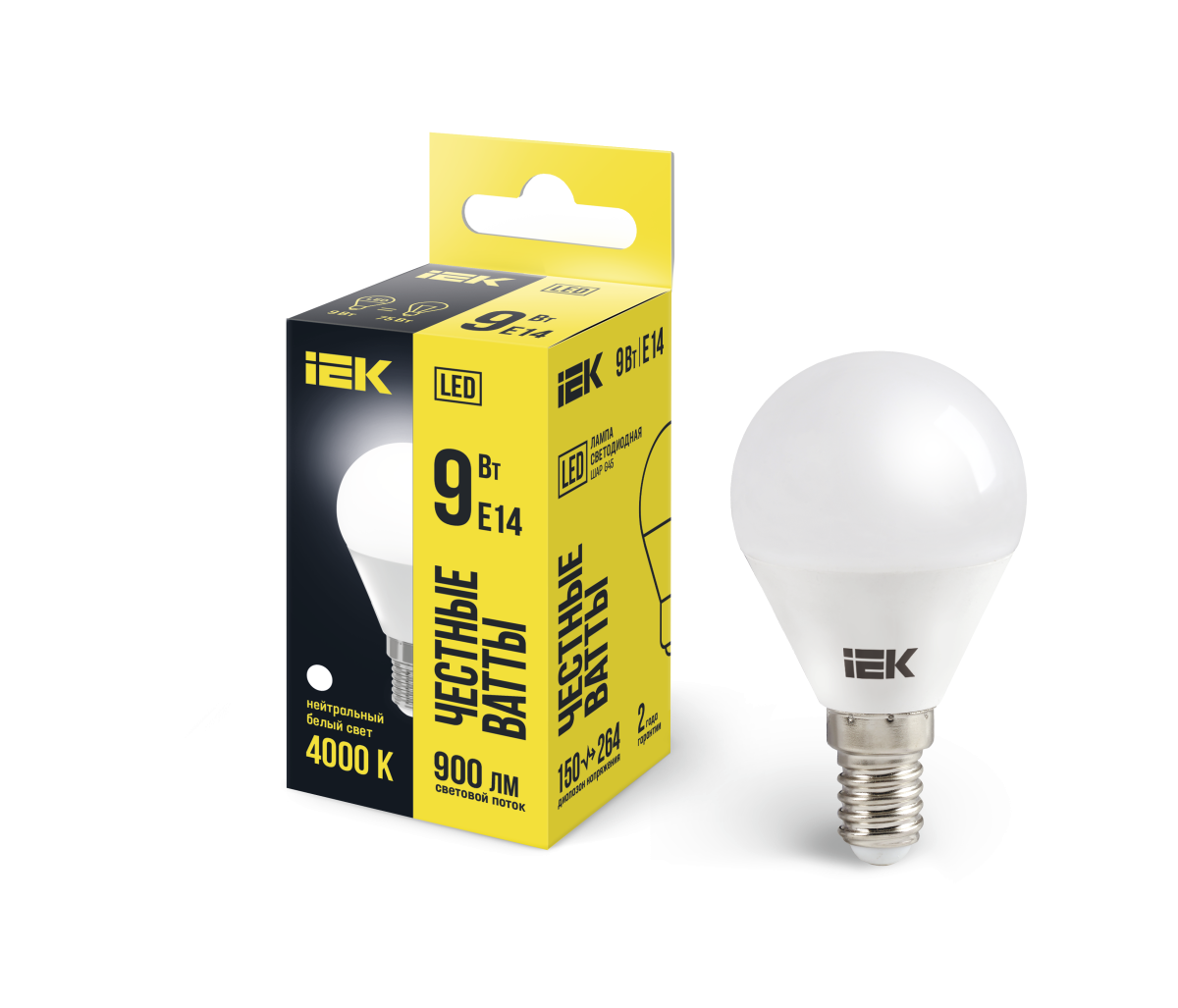 Лампа-LED E14 9W G45 4000K 810Lm ECO ИЭК уп10