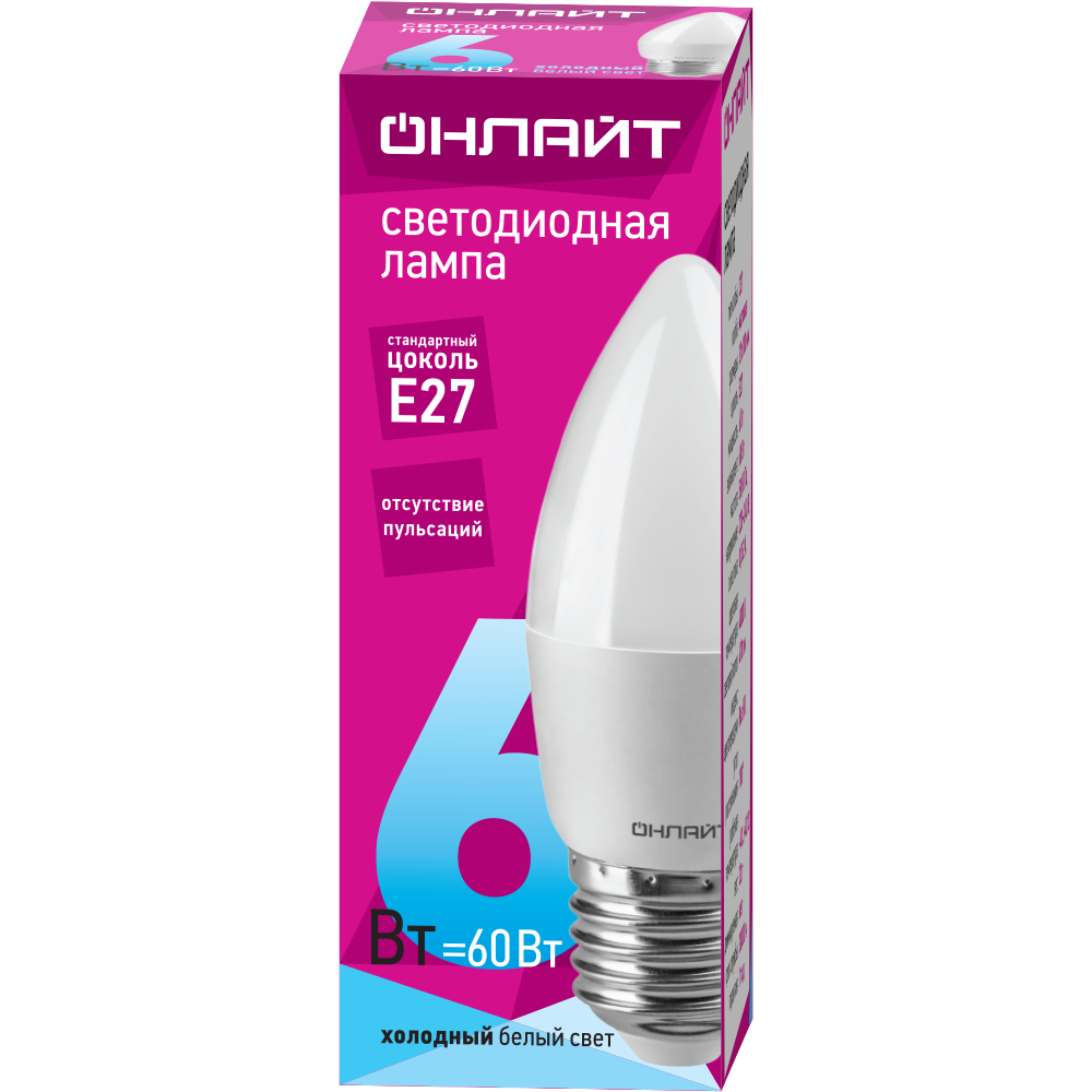 Лампа-LED E27 6W C37 4000К 470лм 230V свеча мат. ОНЛАЙТ (10/100)
