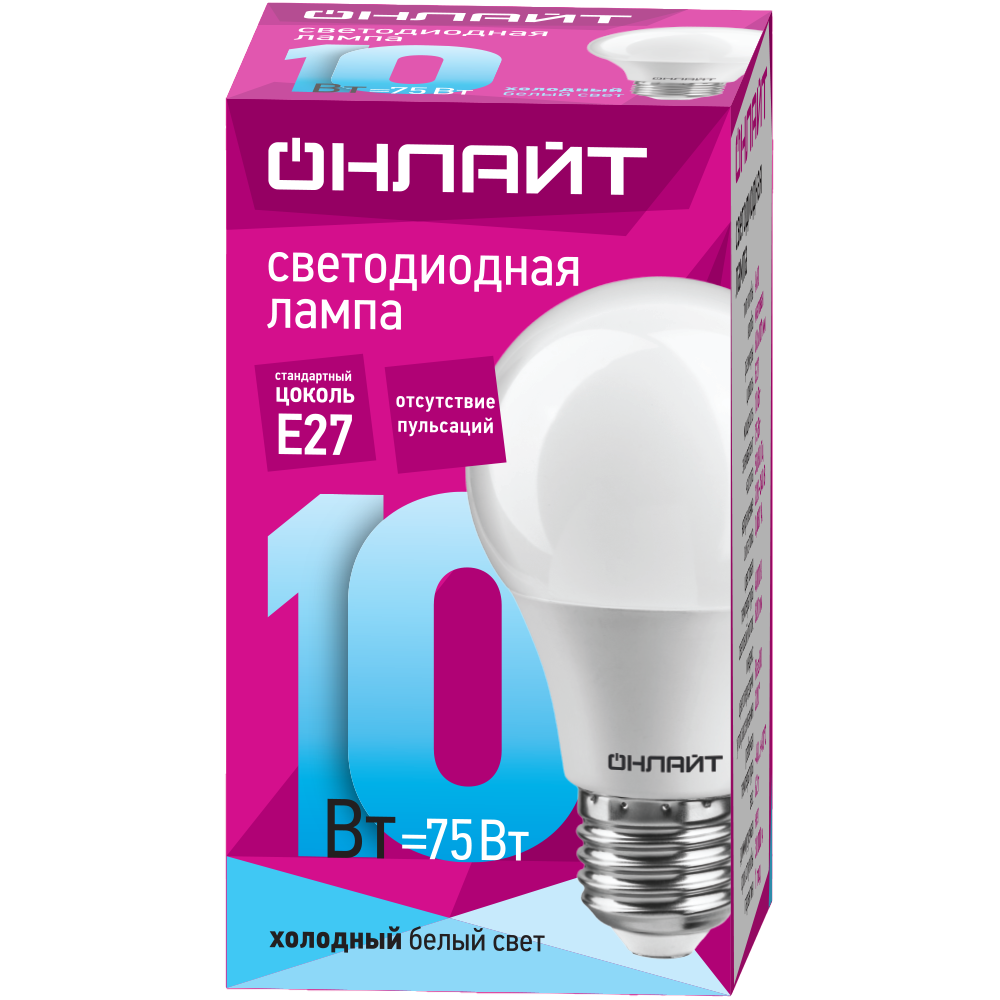 Лампа-LED E27 10W A60 4000К 820лм 230V ОНЛАЙТ (10/100)