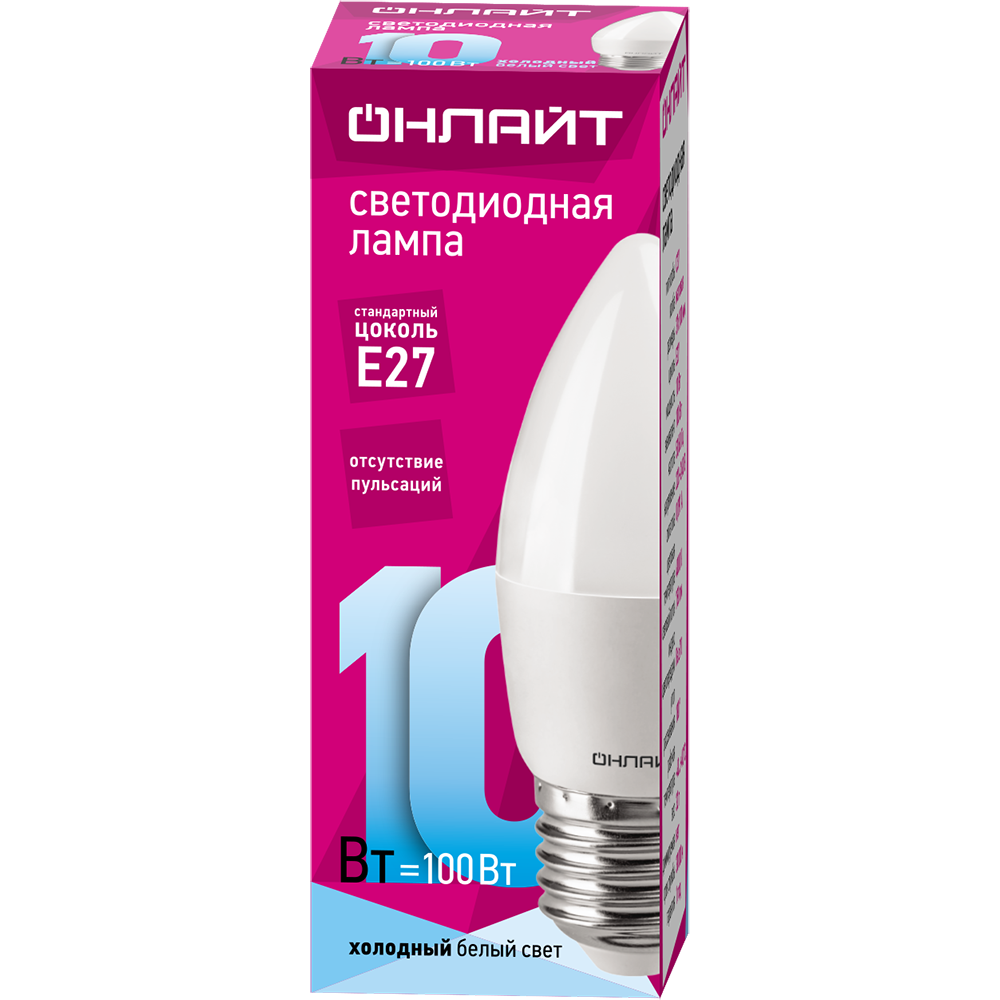 Лампа-LED E27 10W C37 4000К 750Lm 230V свеча мат. ОНЛАЙТ (10/100)