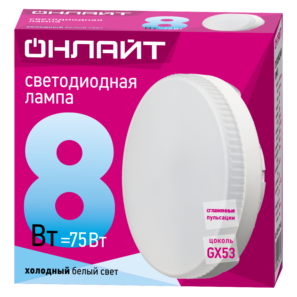 Лампа-LED GX53 8W 4000K 620Lm 230V ОНЛAЙТ (10/100)