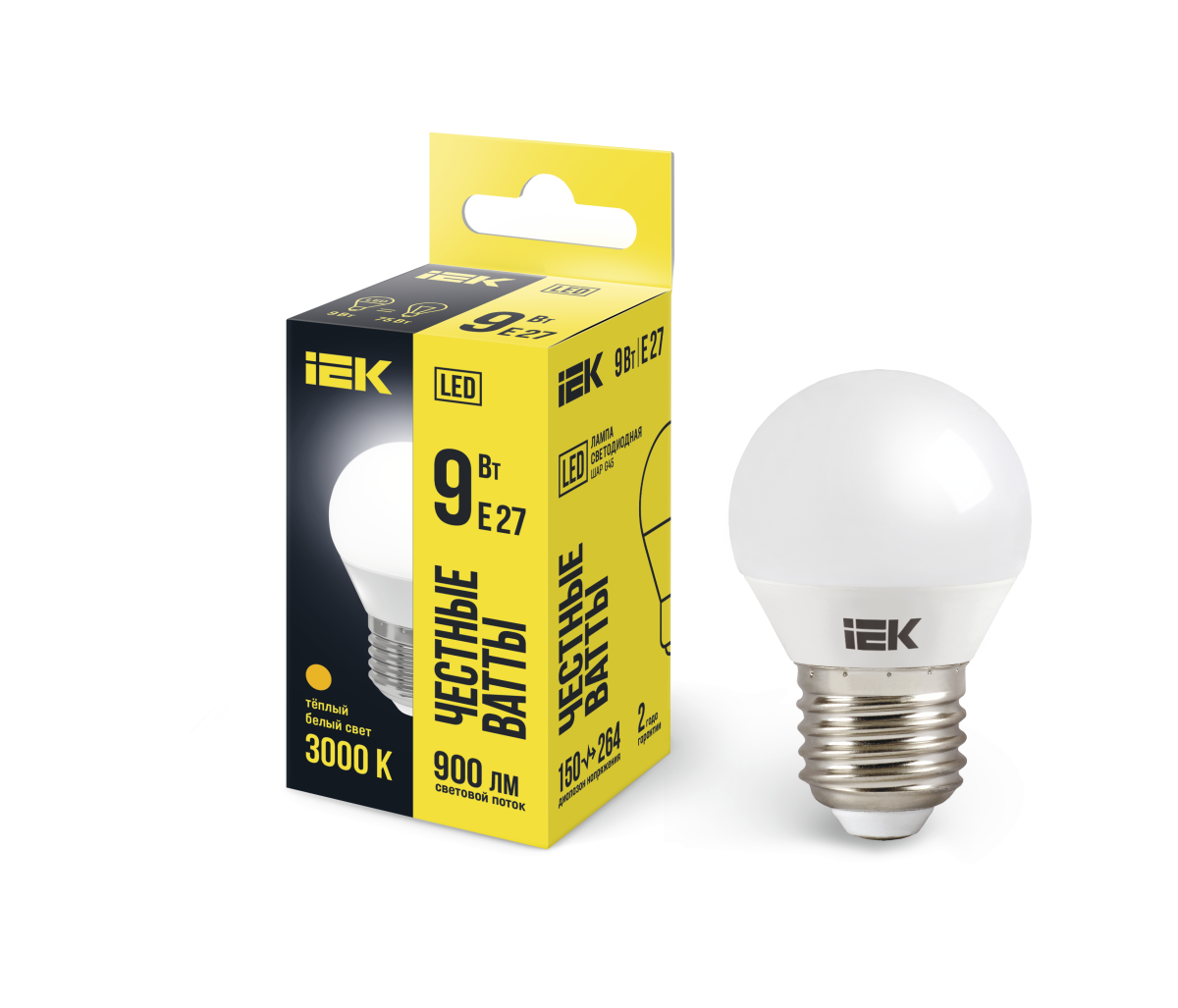 Лампа-LED E27 9W G45 3000K 810Lm ECO ИЭК уп10