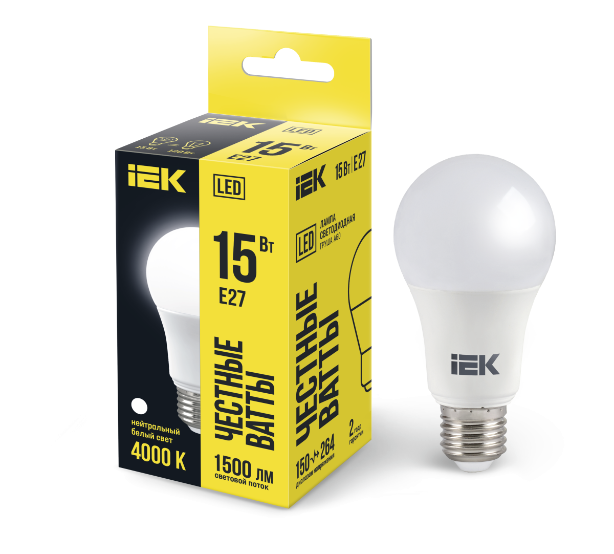 Лампа-LED E27 15W A60 4000К 1350Lm ЕСО ИЭК уп10