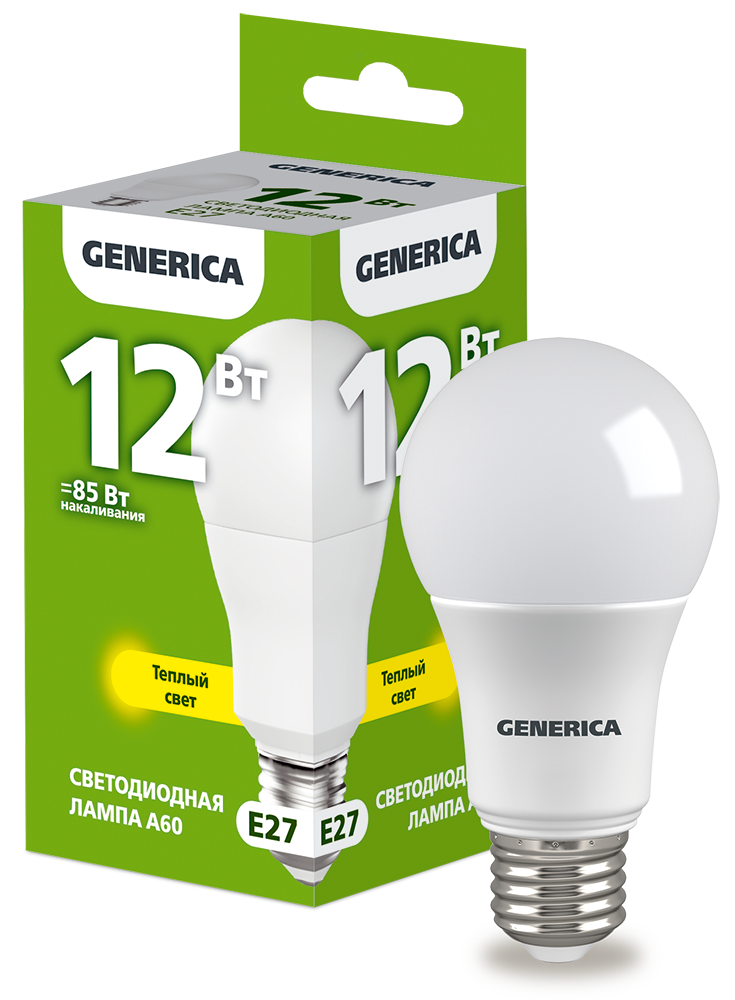 Лампа-LED E27 12W A60 3000K 1200Lm GENERICA (10/100)