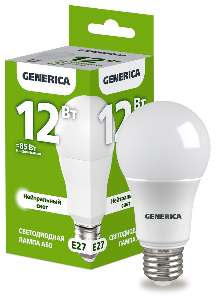 Лампа-LED E27 12W A60 4000K 1200Lm GENERICA (10/100)