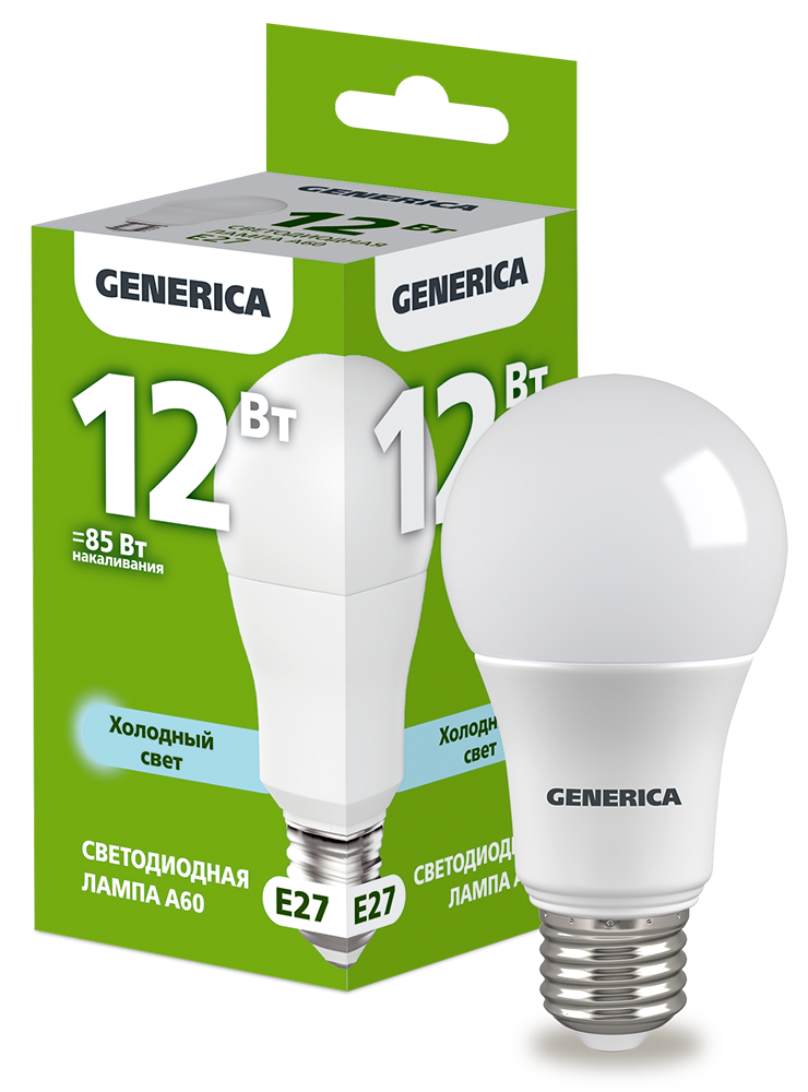 Лампа-LED E27 12W A60 6500K 1200Lm GENERICA (10/100)