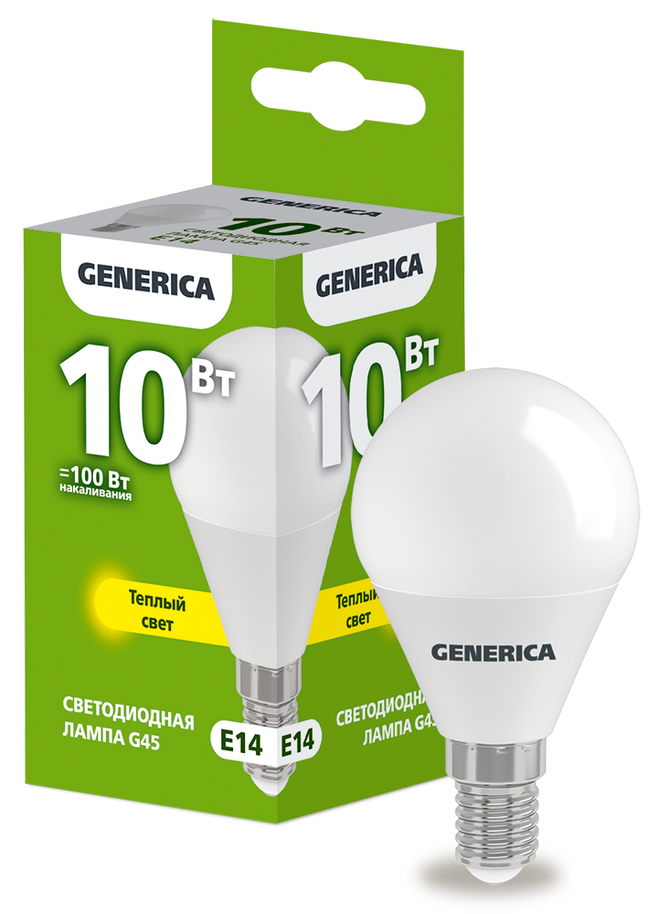 Лампа-LED E14 10W G45 3000K 1000Lm GENERICA (10/100)