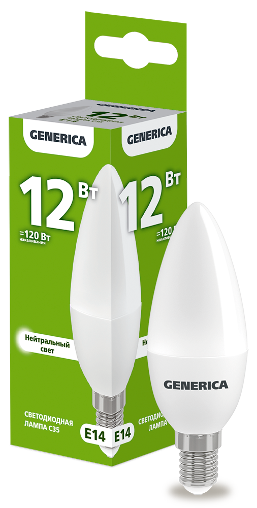 Лампа-LED E14 12W C35 4000K 1200Lm GENERICA (10/100)