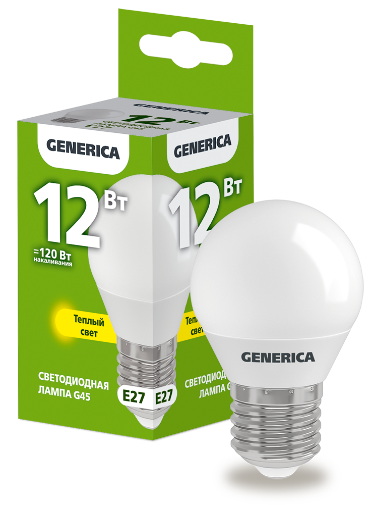 Лампа-LED E27 12W G45 3000K 1200Lm GENERICA (10/100) ЗАКАЗ