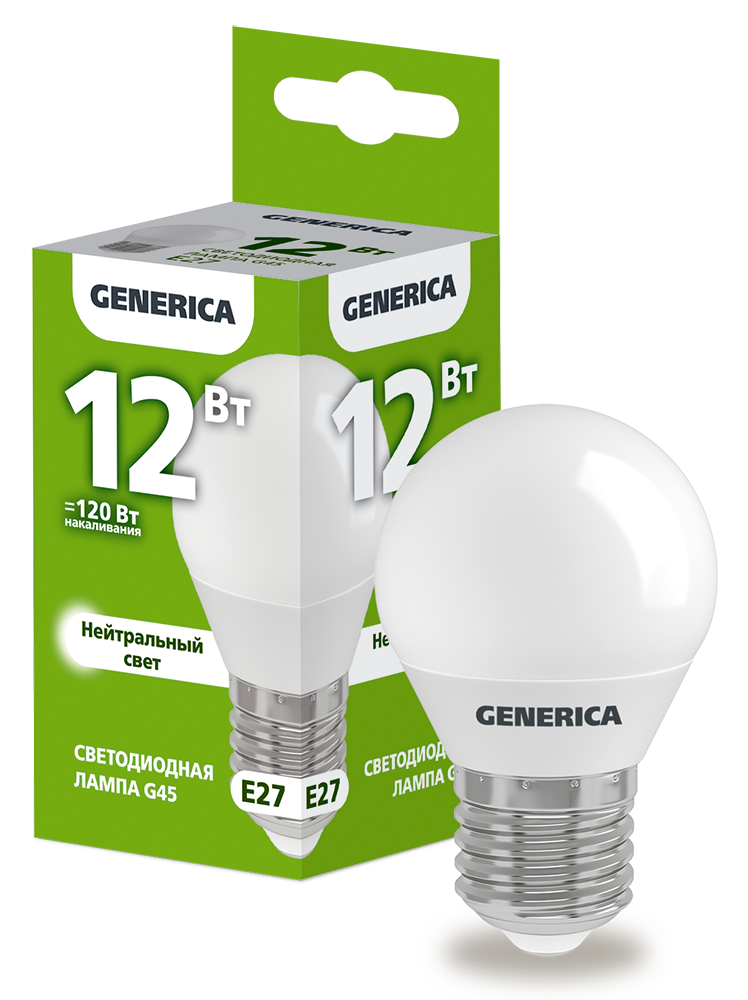 Лампа-LED E27 12W G45 4000K 1200Lm GENERICA (10/100)