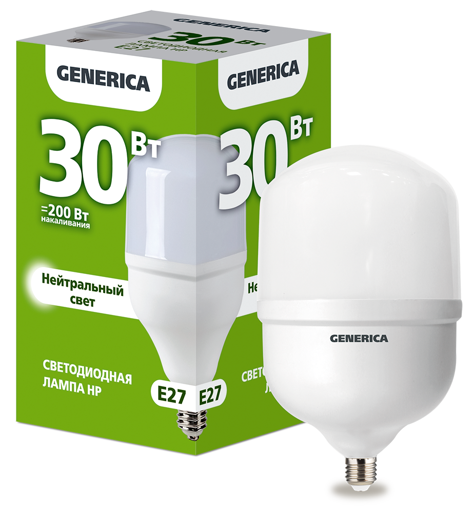 Лампа-LED E27 30W 4000K 3000Lm HP GENERICA (10/100)