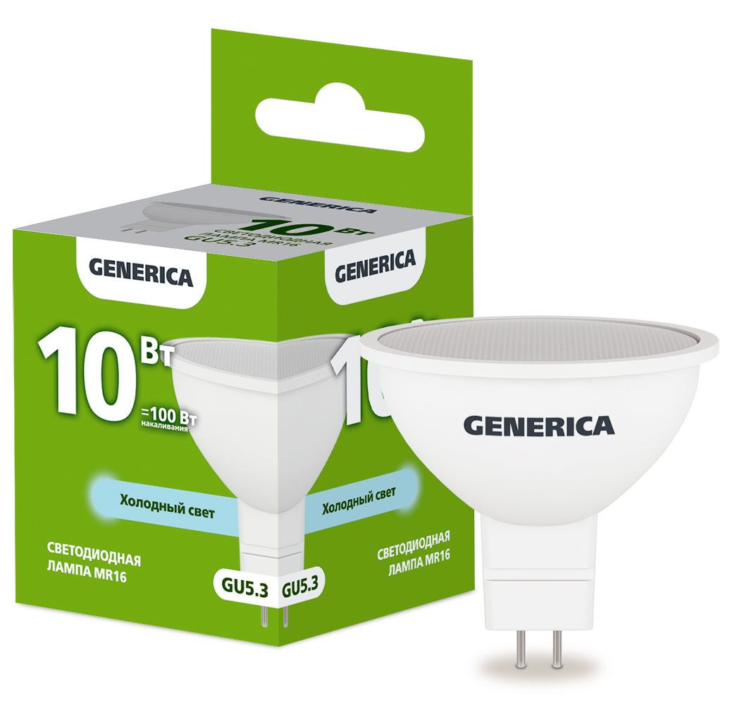 Лампа-LED GU5.3 10W 6500K 1000Lm 230V MR16 GENERICA (10/100)