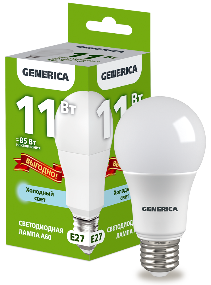 Лампа-LED E27 11W A60 6500K 1200Lm GENERICA
