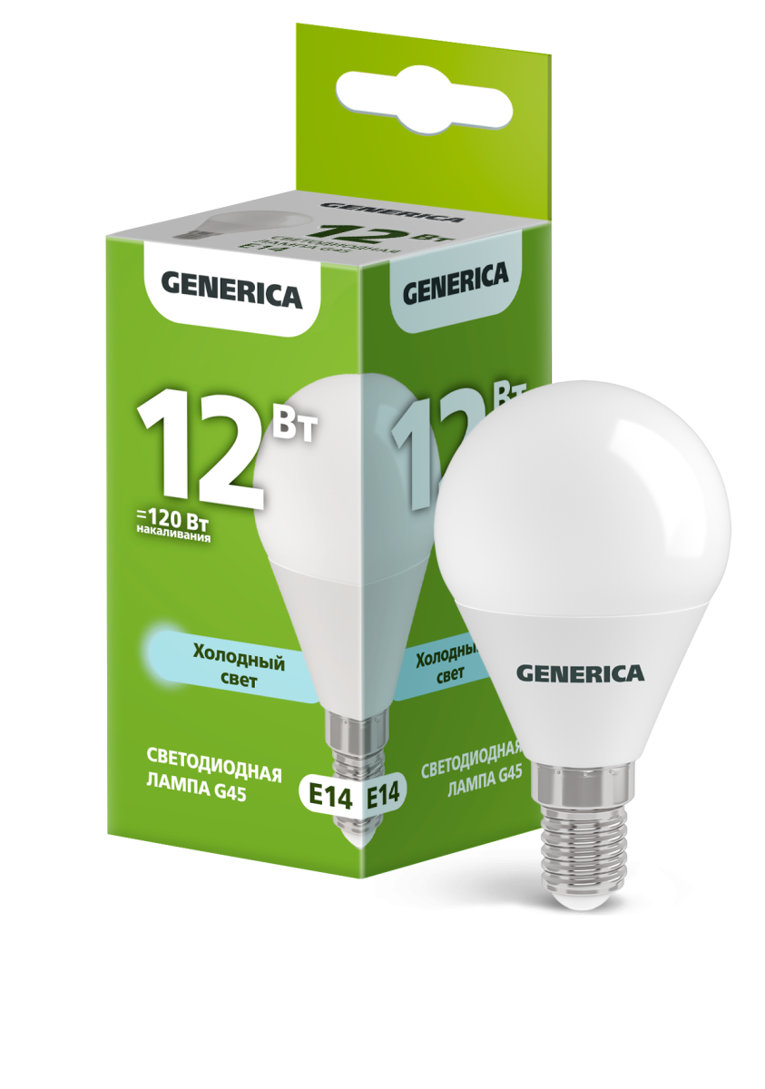 Лампа-LED E14 12W G45 6500K 1200Lm GENERICA (10/100)