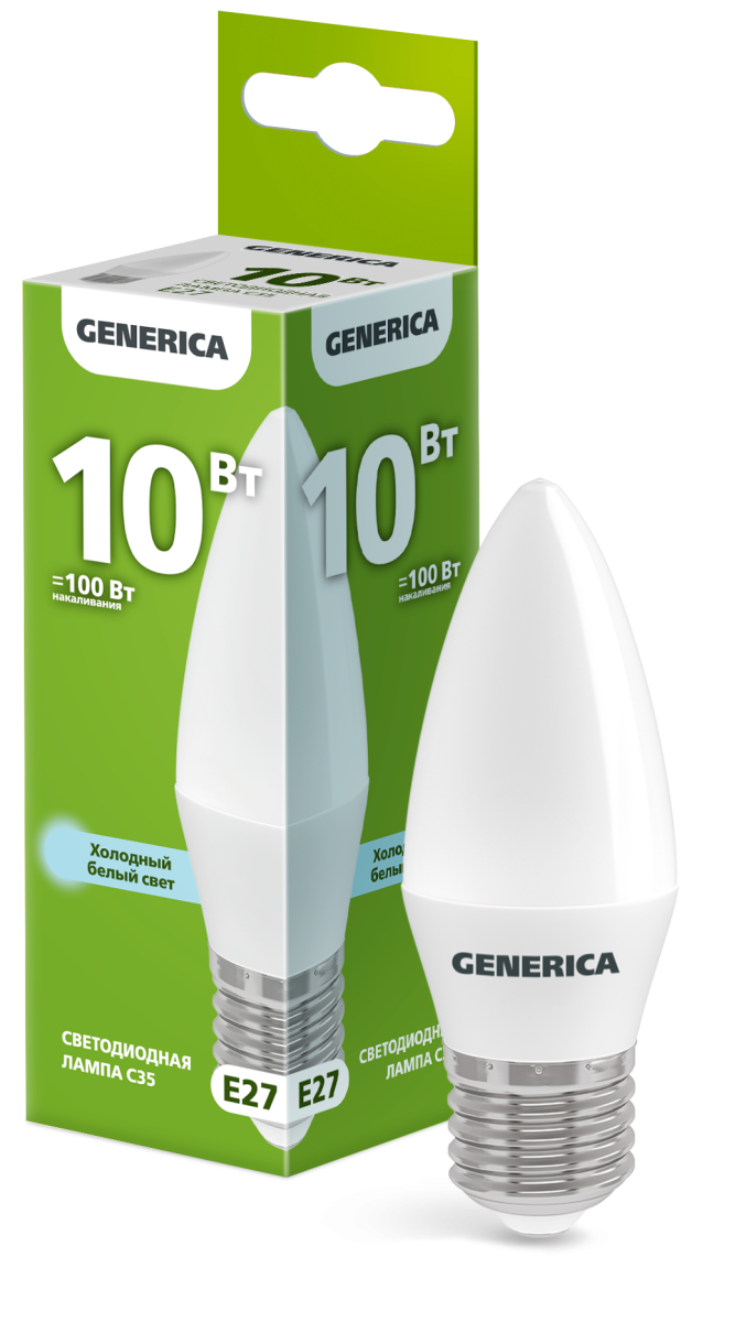 Лампа-LED E27 10W C35 6500K 1000Lm GENERICA (10/100) ЗАКАЗ