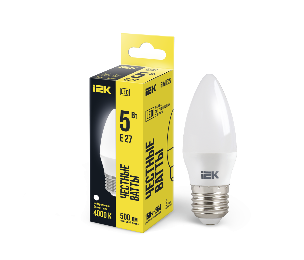 Лампа-LED E27 5W C35 4000K 450Lm ECO ИЭК свеча уп10