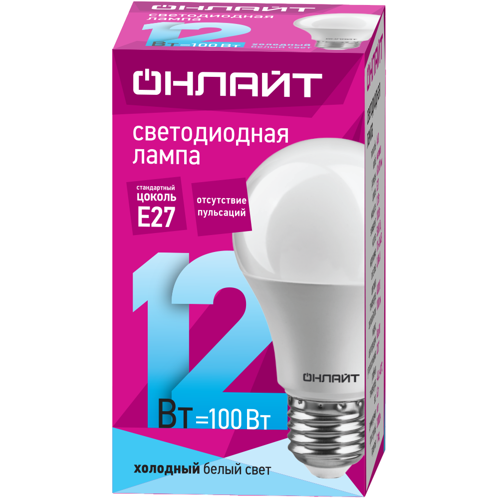 Лампа-LED E27 12W А60 4000К 1000Lm 230V ОНЛАЙТ (10/100)