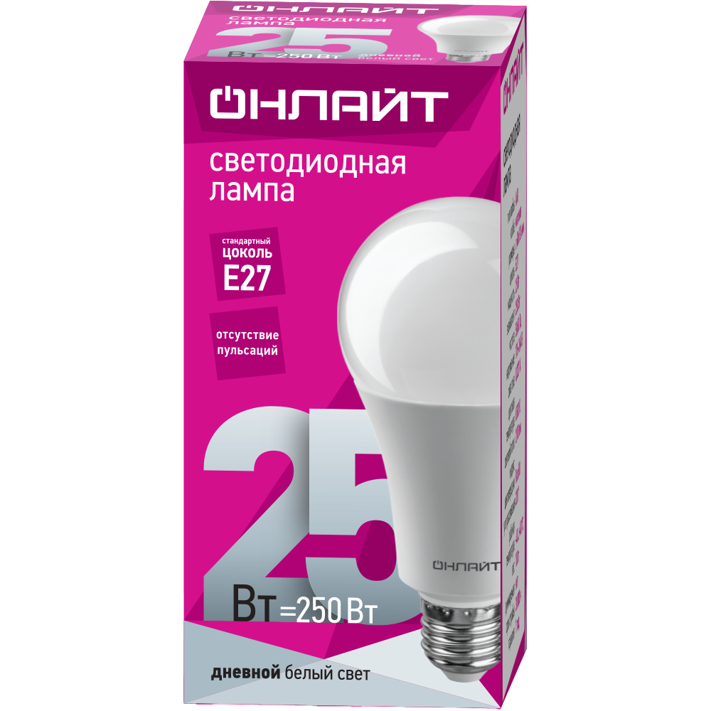 Лампа-LED E27 25W A60 6500К 2100Lm 230V ОНЛАЙТ (10/100)
