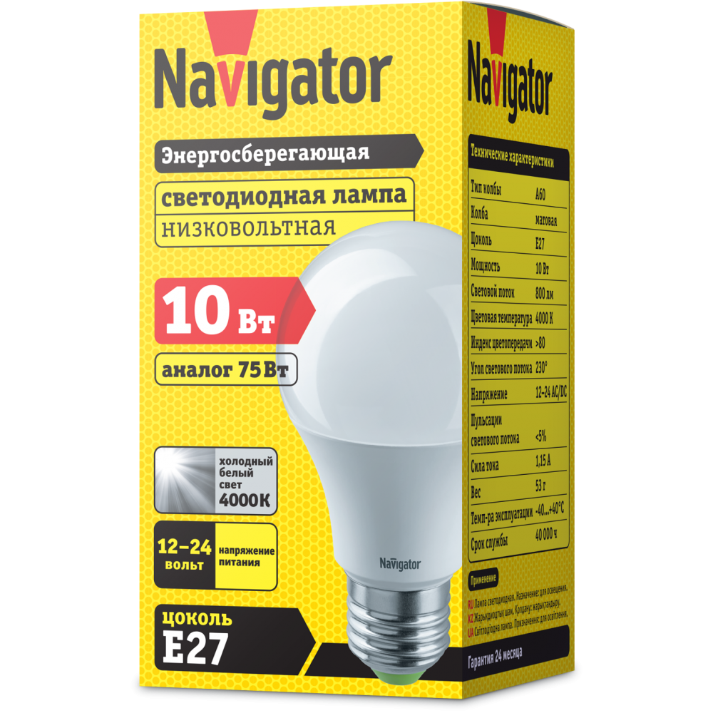 МО LED E27 10W 4000K 800лм 12-24V Navigator (10/100)