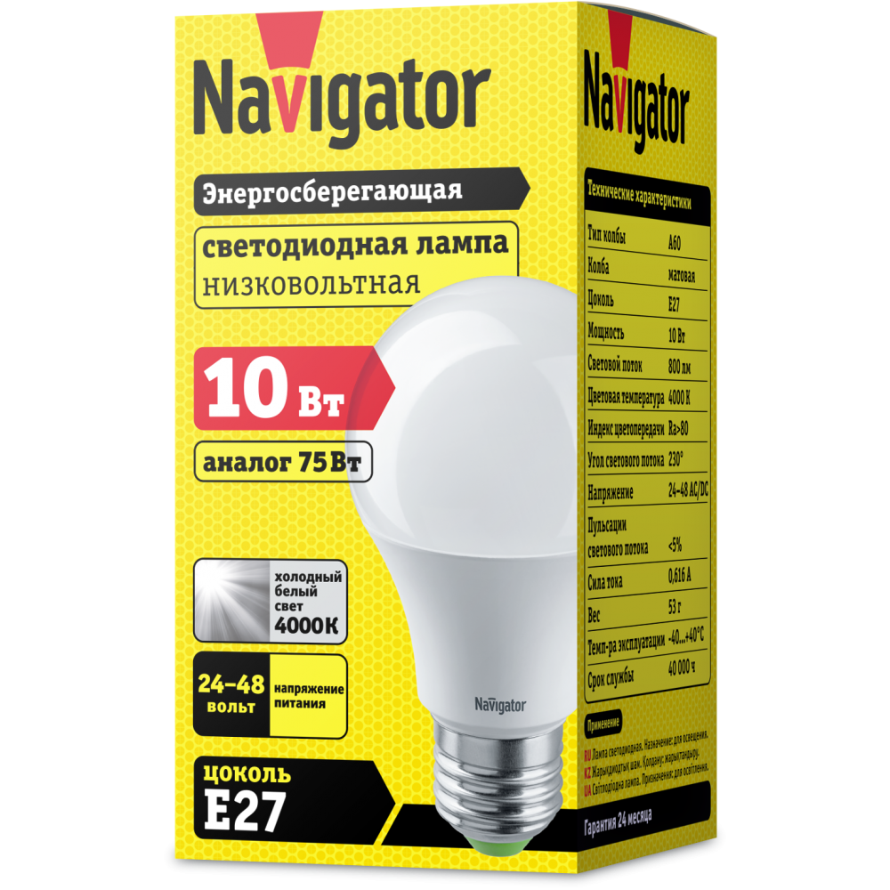 МО LED E27 10W 4000K 800лм 24-48V Navigator (10/100)