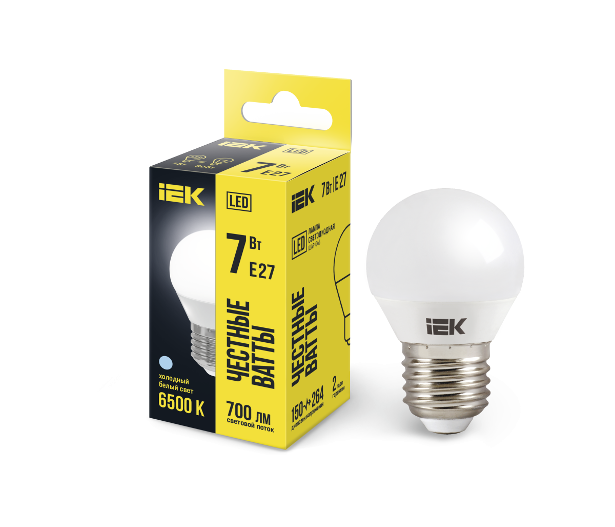 Лампа-LED E27 7W G45 6500K 630Lm ECO ИЭК уп10