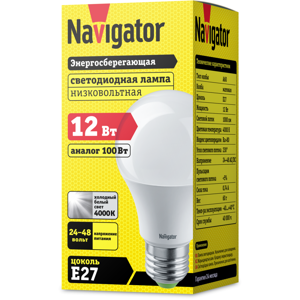 МО LED E27 12W 4000K 1000лм 24-48V Navigator (10/100)