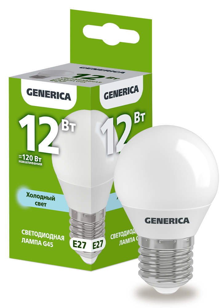 Лампа-LED E27 12W G45 6500K 1200Lm GENERICA (10/100)