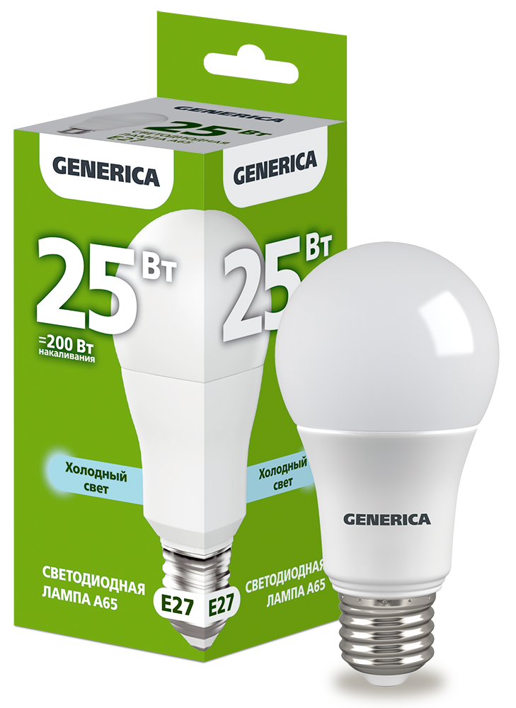 Лампа-LED E27 25W A65 6500K 2500Lm GENERICA (10/100)