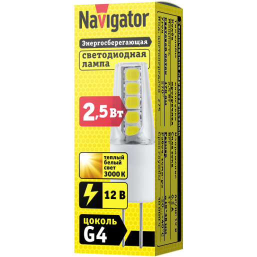 Лампа-LED G4 2.5W 3000К 170Lm 12V Navigator (1/100/2000)