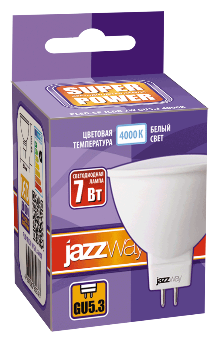 Лампа-LED GU5.3 7W 4000K 520Lm 230V MR16 Jazzway уп50