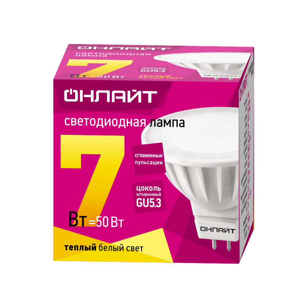 Лампа-LED GU5.3 7W 3000К 460Lm 230V MR16 ОНЛАЙТ (10/100)