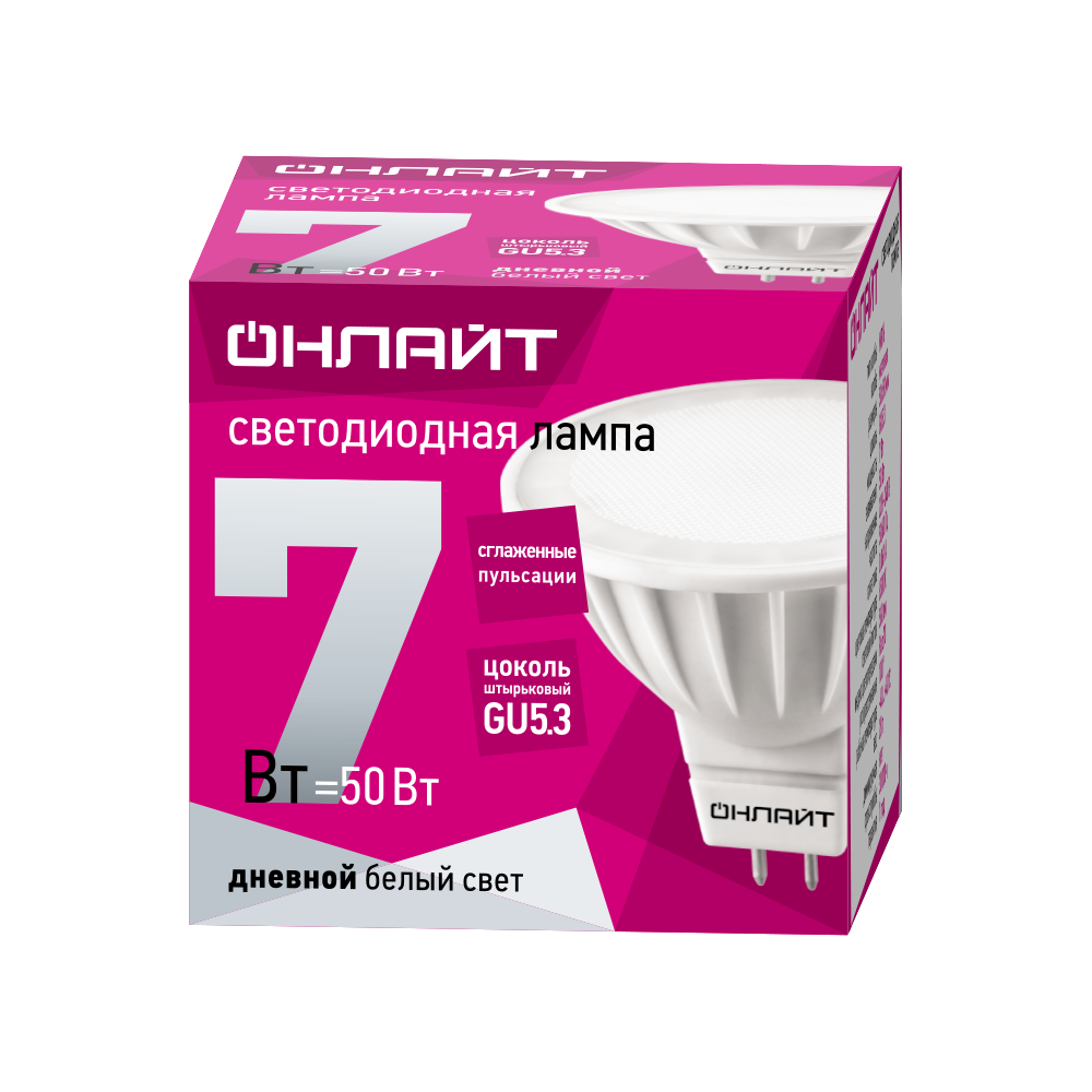 Лампа-LED GU5.3 7W 6500К 560Lm 230V MR16 ОНЛАЙТ (10/100)