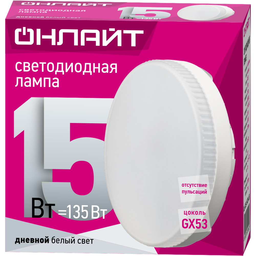 Лампа-LED GX53 15W 6500K 1250Lm 230V ОНЛAЙТ (10/100)НЕ НИЖЕ МРЦ