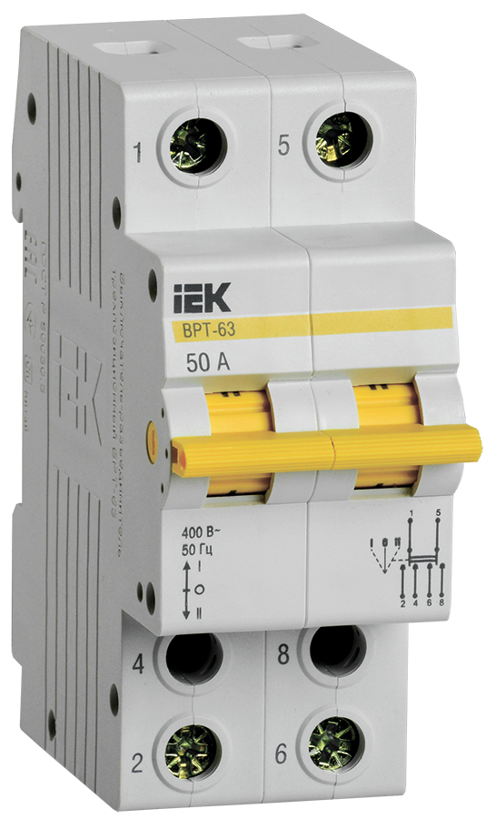 Выключатель-разъединитель трехпозиционный ВРТ-63 2P 50А IEK (6/72) - заказ