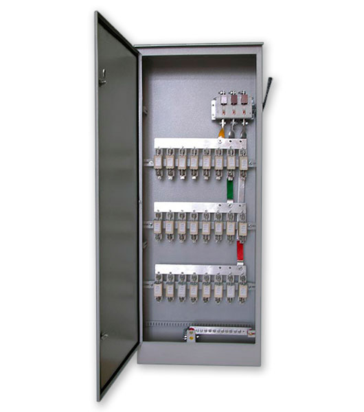 Распределительные силовые шкафы предназначены для приема и распределения электрической энергии. Шкафы рассчитаны на номинальные токи до 400 А и номинальное напряжение до 380 В трехфазного переменного тока частотой 50 Гц и с защитой отходящих линий предохранителями ППН33 (до 160 А), ППН35 (до 250 А), ППН37 (до 400 А).
