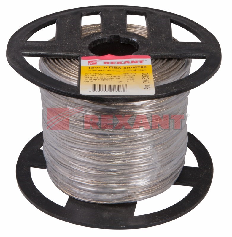 Трос стальной d=2 мм (б200) ПВХ-изоляция КИТАЙ REXANT
