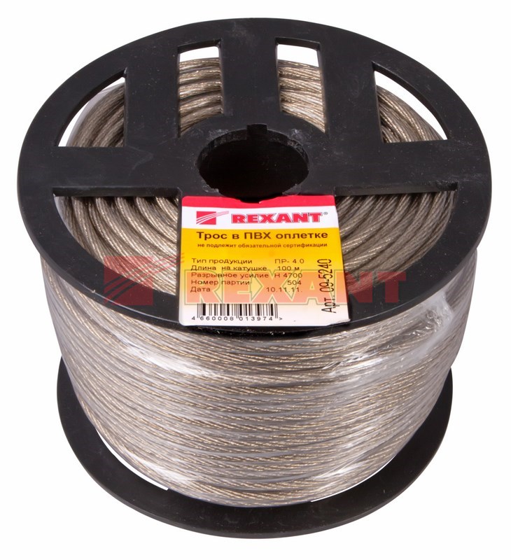 Трос стальной d=4 мм (б100) ПВХ-изоляция КИТАЙ REXANT