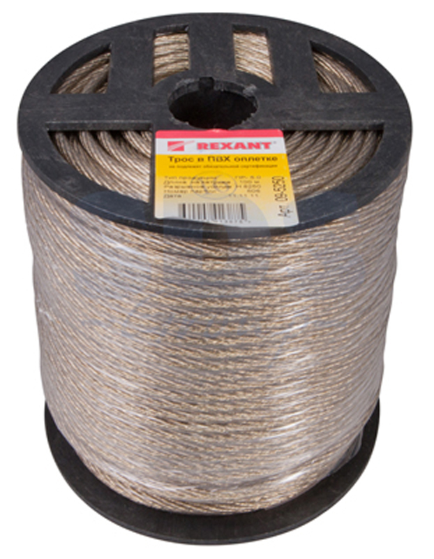 Трос стальной d=5 мм (б100) ПВХ-изоляция КИТАЙ REXANT
