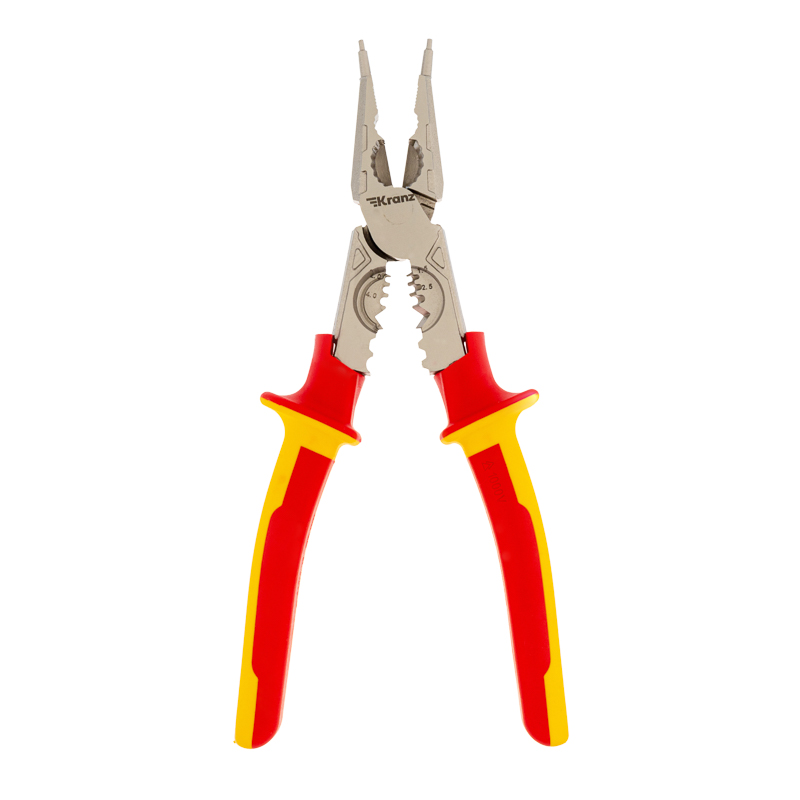 Многофункциональные диэлектрические плоскогубцы – это инструмент на все случаи жизни, включающий в себя: плоскогубцы, бокорезы, инструмент для зачистки кабеля, инструмент для обжима клемм.