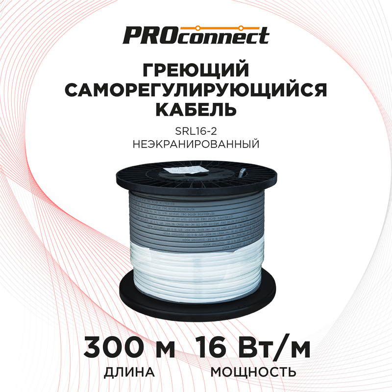 Саморегулируемый греющий кабель SRL16-2 (16Вт/1м) / SRF16-2CR (16Вт/1м) / SRL24-2 (24Вт/1м) /SRL24-2CR (24Вт/1м)/ SRL30-2 (30Вт/1м) Proconnect