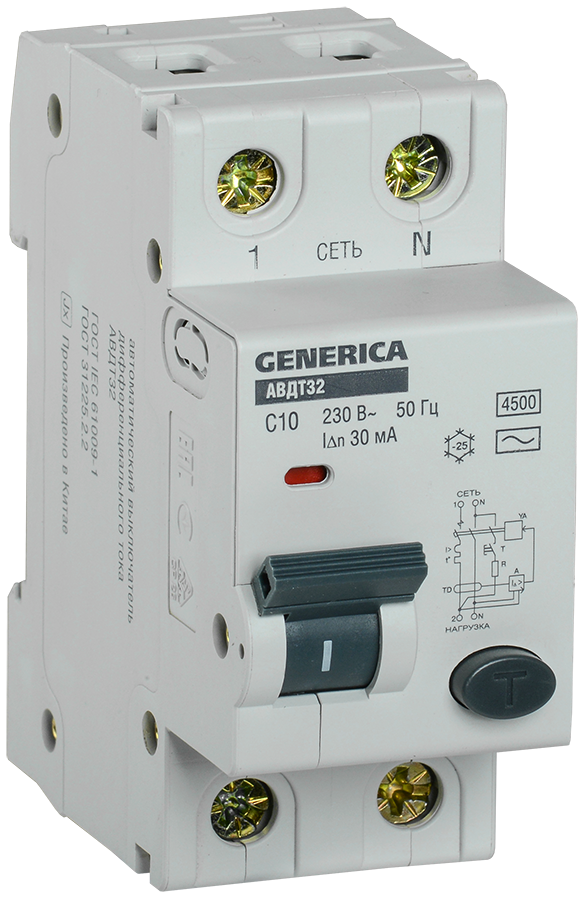 Диф авт АВДТ 32 C10 (10А)/ 30 мА GENERICA - заказ