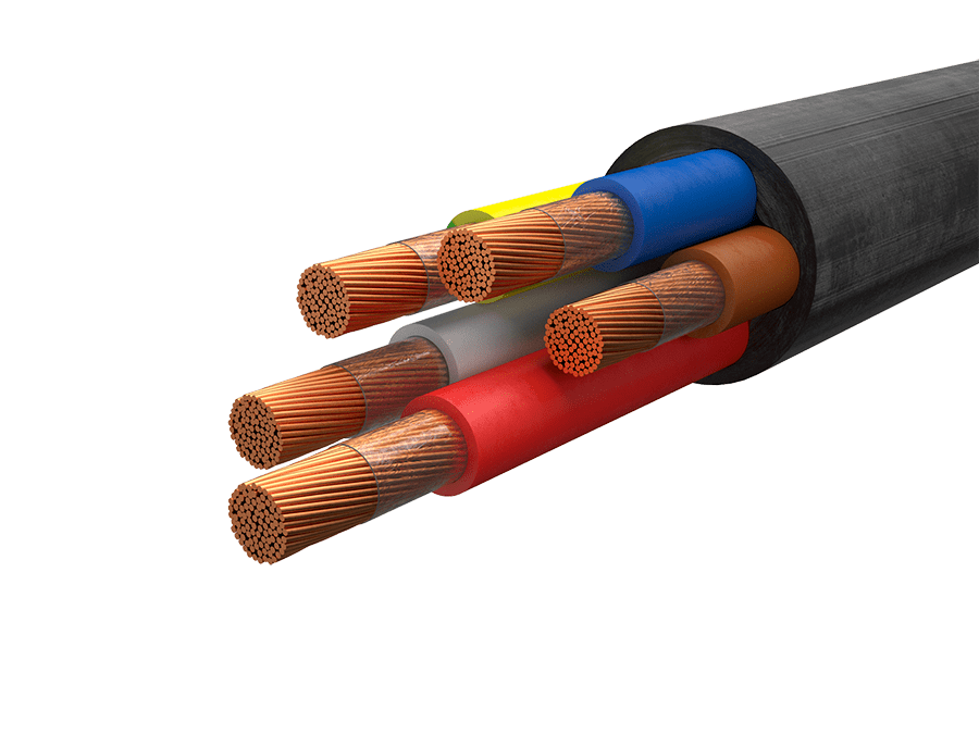 3. Изоляция - из резины изоляционной. Изолированные жилы имеют отличительную расцветку сплошную или в виде продольной полосы. Изоляция нулевой жилы выполняется голубого цвета; если нулевая жила отсутствует, голубой цвет применяется для расцветки любой жилы, кроме жилы заземляющей. Жила заземления имеет зелено-желтый цвет. Расцветка одножильных и двухжильных кабелей не нормируется. Цвета красный, серый, белый и , если не в сочетании, зеленый и желтый не используется для расцветки жил многожильных кабелей.