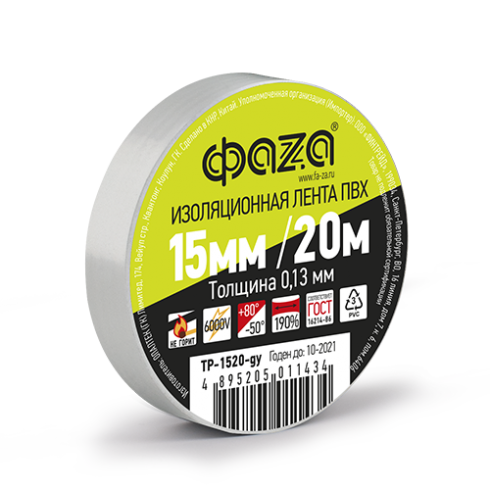 Изолента 15мм/20м серая ФАZА уп.10/200