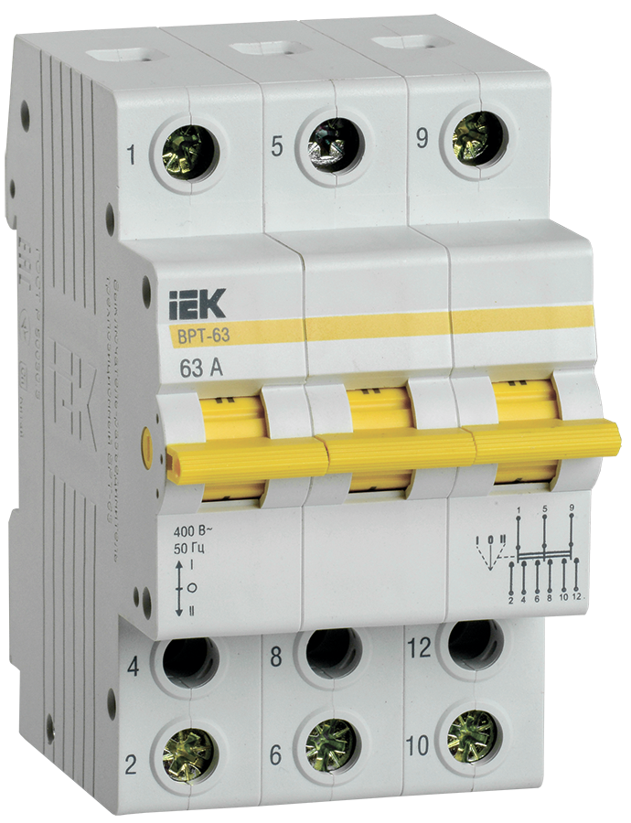Выключатель-разъединитель трехпозиционный ВРТ-63 3P 63А IEK (4/48)
