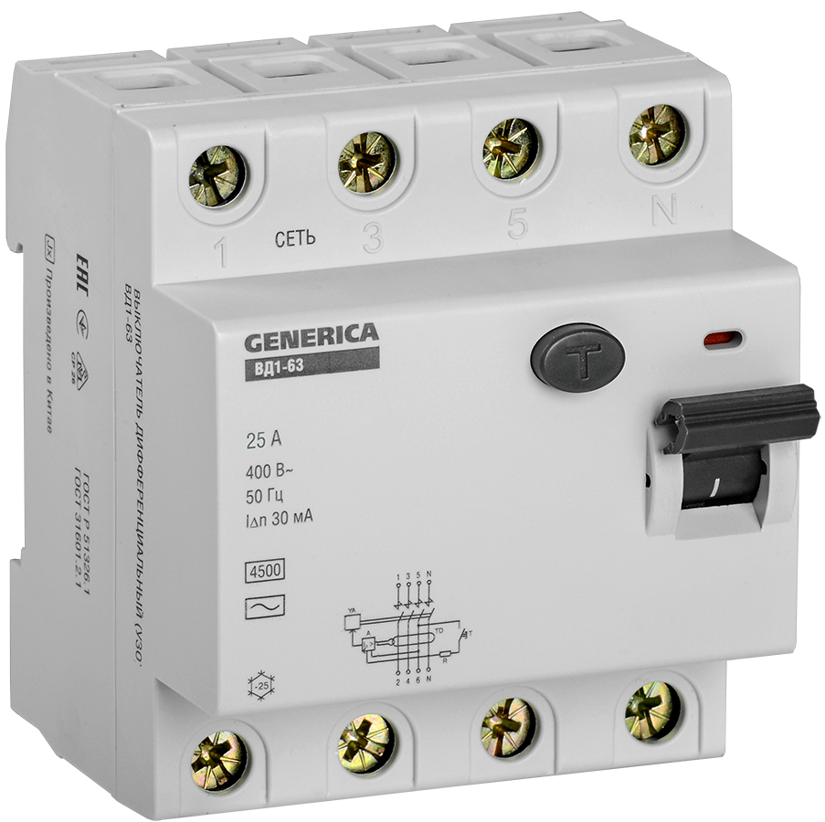 УЗО 4p 25А/ 30мА ВД1-63 GENERICA - заказ